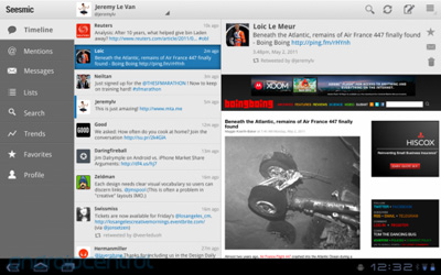 SeesmicDie Zahl der im Android Market verfügbaren Honeycomb-Apps steigt langsam aber sicher deutlich an. Auch die App Seesmic, mit der sich die News-Streams verschiedender sozialer Netzwerke wie Facebook und Twitter zusammen anzeigen lassen, wird in Kürze eine speziell für den Einsatz auf Tablets mit Android 3.0 (Honeycomb) optimierte Version erhalten. Die US-Website Android Central durfte bereits einen Blick auf die Vorabversion werfen und hat einen Screenshot veröffentlicht. So wird Seesmic für Honeycomb in etwas aussehen: