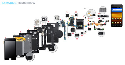 Dass das Galaxy S 2 unter der Haube einiges zu bieten hat, beweisen nicht zuletzt die weltweit hervorragenden Verkaufszahlen. Momentan ist das mit einem 4,3 Zoll Super AMOLED Plus Display ausgestattete Smartphone das am erfolgreichsten gestartete Samsung-Mobiltelefon aller Zeiten. Was genau das Samsung Galaxy S 2 unter der Haube hat, verrät jetzt die englischsprachige Website SamsungTomorrow. Die Redakteure werfen einen Blick ins innere des Geräts und illustrieren dies durch diverse Fotos und Beschreibungen der einzelnen Bestandteile. Zwei Beispielfotos sind unter diesem Artikel zu sehen, weitere Bilder lassen sich auf der Website von SamsungTomorrow finden.
