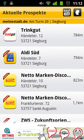 Die App von meinestadt.de gehört zu den beliebtesten deutschen Android Apps und hat sich verdientermaßen einen Platz in unserer Auswahl der besten deutschen Android Apps gesichert. In der neuen Version 3.1.8 haben die Entwickler nun den Funktionsumfang nochmal erweitert und lokale Schnäppchen-Angebote aufgenommen, die vom kaufDA Navigator zur Verfügung gestellt werden.Damit haben die Nutzer überall in Deutschland sofortigen Zugriff auf digitale Prospekte von bundesweit rund 200.000 Einzelhandelsgeschäften und verpassen garantiert keine Angebote mehr.