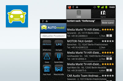 Die telegate AG hat sich auf Android bisher vor allem durch die erfolgreichen Apps 11880 und klickTel einen Namen gemacht. So führt klickTel beispielsweise auch unserer Auswahl der besten deutschen Android Apps an. Jetzt hat telegate mit AUTO mobile und FINANZEN mobile zwei neue Apps veröffentlicht, die beide kostenlos im Android Market zum Download bereitstehen. Während sich mit AUTO mobile Werkstätten, Radarfallen, Tankstellen usw. im direkten Umkreis des Nutzers finden lassen, haben sich Entwickler bei FINANZEN mobile auf Services zu Versicherungen, Banken, Geldautomaten etc. konzentriert.