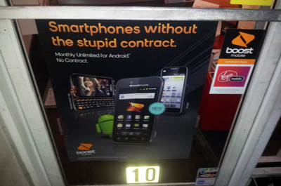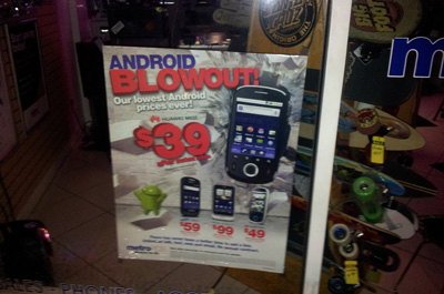 Die letzten beiden Bilder stammen von Plakaten aus Schaufenstern des Mobilfunkhändlers MetroPCs, auf denen vor allem Einsteiger-Smartphones wie das HTC Wildfire S zum günstigen Preis angeboten werden.