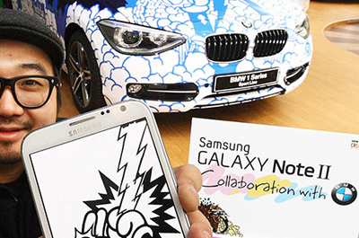 Samsung und der deutsche Autohersteller BMW haben sich zusammengetan, um in Südkorea eine gemeinsame Marketing-Aktion zu starten. Im Zentrum stehen dabei die BMW 1er-Serie und das Samsung Galaxy Note 2. Die Kampagne beinhaltet BMW 1er-Modelle, die vom bekannten Designer Shin Dong-Jin mit Graffiti gestaltet wurden (siehe Bild). Und diese Graffitis sollen natürlich mit dem Samsung Galaxy Note 2 gestaltet worden sein, berichtet die US-Websiter Android Authority. DIe Fahrzeuge werden ab dem 12. Dezember im Coex Central Plaza in der südkoreanischen Hauptstadt Seoul zu sehen sein. Fotos gibt es aber auch auf der Flickr-Seite von Samsung zu sehen.