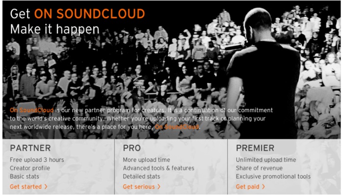 Künftig wird SoundCloud drei verschiedene Kategorien anbieten: Partner, Pro und Premier. Als Partner hat man die Möglichkeit, Songs hochzuladen und auf der Plattform öffentlich zu vermarkten. Ein Pro bekommt zusätzliche Features. Eine längere Upload-Zeit, Spotlight und detaillierte Statistiken stehen dem Pro zur Verfügung. Einen Premium-Account bekommen nur ausgewählte Künstler und Labels. Diese haben dann die Möglichkeit, auf ihren hochgeladenen Contents Werbung zu schalten. Die Einnahmen werden dann mit Sound Cloud geteilt.