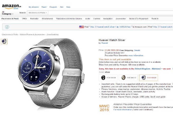 Huawei Watch für 999 Euro auf Amazon vorbestellbar