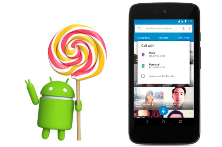Eine der größten Veränderungen von Android 5.1 ist, dass das Betriebssystem jetzt mehrere SIM-Karten in Dual-SIM fähigen Smartphones unterstützt. Wie man auf dem Foto erkennen kann, kann der Smartphone-Nutzer selbst wählen, ob er einen Anruf mit seiner privaten Nummer oder seiner Geschäftsnummer tätigen möchte.