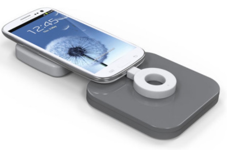 Für die Smartphones, die nicht Qi-kompatibel sind, hat sich der Elektronikhersteller Duracell etwas ausgedacht. Wie auf dem Foto zu sehen ist, kann eine Art Ring an das Smartphone angeschlossen werden und dann auf die Qi-Station gelegt werden. So kann der Akku des Smartphones auch ohne Kompatibilität aufgeladen werden.