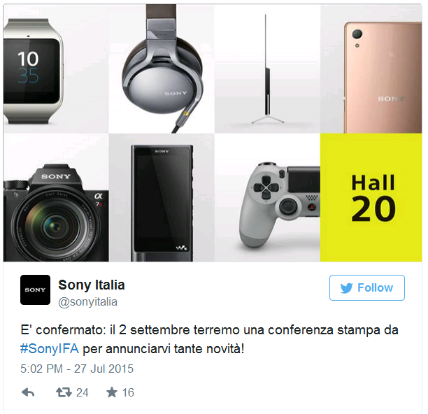 Sony wird dabei nicht nur Teilnehmer der Messe sein sondern einige Tage zuvor, am 2. September, sogar sein eigenes „Media-Event“ veranstalten. Selbstverständlich ist von der offiziellen Ankündigung der neuen Sony Flagschiff-Smartphones auszugehen und auch die Vorstellung von weiteren neuen Produkten ist wahrscheinlich.