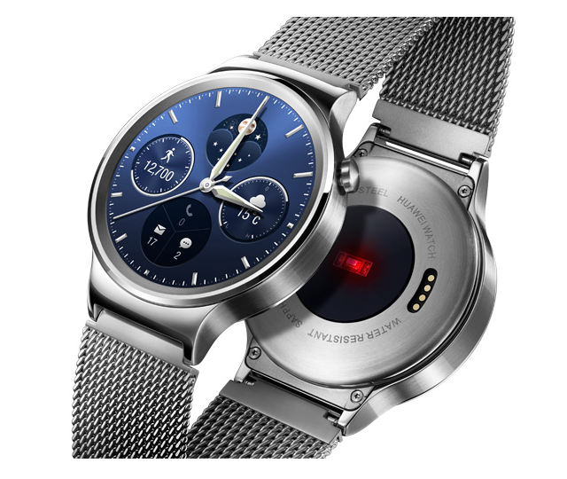Die Huawei Watch hat Android Wear als Betriebssystem und ist aus Edelstahl gefertigt. Sie wird in den Farben Schwarz, Gold und Silber erhältlich sein. Die technischen Daten sind ein 1,4“ AMOLED Display mit Saphirglas und einer Auflösung von 400×400 Pixeln , Bluetooth 4.1, ein Vierkern-Snapdragon 400-Prozessor, 512 MB RAM, 4GB interner Speicher sowie ein Akku mit 300 mAh.
