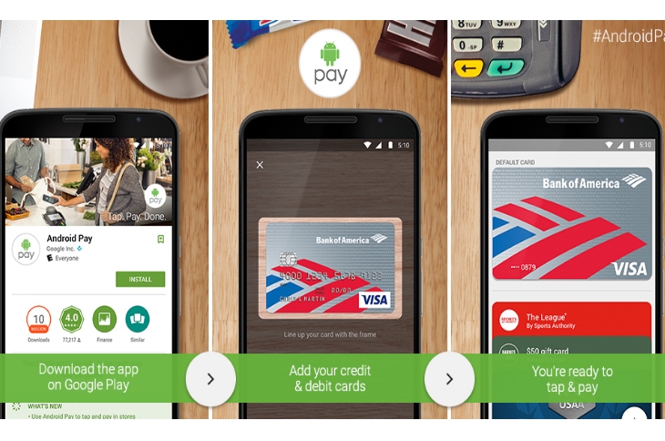 Mit Android Pay erhalten Nutzer die Möglichkeit, Bezahlvorgänge mit NFC-fähigen Endgeräten via NFC-Terminals durchzuführen. Nach Angaben von Google ist diese Bezahlmethode bereits bei Millionen Händlern möglich.