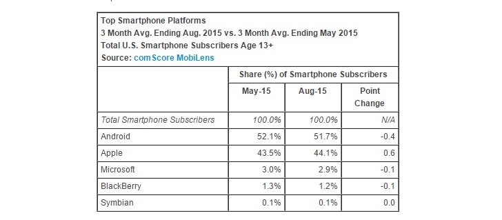 Was die Betriebssysteme angeht, konnte sich Apple allerdings nicht nach vorne drängen. Googles Android bleibt weiterhin die Nummer 1 der Betriebssysteme auf dem US-Markt. Über 50 Prozent der Geräte laufen mit Lollipop, KitKat und Co. 44 Prozent aller Smartphones sind mit Apples iOS ausgestattet. Andere Betriebssysteme spielen kaum eine Rolle – Microsoft, BlackBerry und Co. machen nicht einmal 5 Prozent des Marktanteils aus.