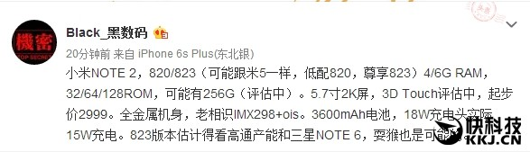 Das Xiaomi Mi Note 2 soll entweder vom Snapdragon 820 oder dem 823 (evtl. mit höherer Taktfrequenz) angetrieben und von 4 GB oder auch 6 GB RAM unterstützt werden. Der interne Speicher wird laut des Berichts 32 GB, 64 GB oder 128 GB betragen, wobei die Möglichkeit einer 256 GB-Variante ebenfalls noch nicht ganz vom Tisch ist. Des Weiteren soll die Kamera auf der Rückseite des Smartphones 16 MP und den IMX298-Sensor aus dem Hause Sony erhalten – demnach ist der OIS Bildstabilisator ebenfalls mit an Bord. Dem Akku wird eine Kapazität von 3600 mAh zugeschrieben und eine Art Schnellladefunktion soll ebenfalls zur Verfügung gestellt werden.