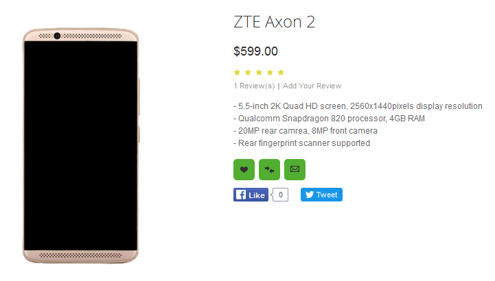 ZTE Axon 2 bei Online-Händler für $599 aufgetaucht