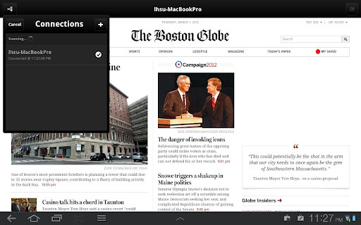 7. Adobe Shadow Webdesigner und –entwickler für mobile Websites können ihren PC oder Mac über die App mit einem Android Smartphone oder Tablet verbinden und am Computer durchgeführte Änderungen ohne Verzögerungen direkt auf dem Android Gerät testen. Auftretende Layoutfehler lassen sich auf diese Weise schneller beheben. Für die Nutzung der App wird zusätzlich die Adobe Shadow Software für Windows oder OSX benötigt. Die Adobe Shadow App steht kostenlos zum Download im Android Market bereit.