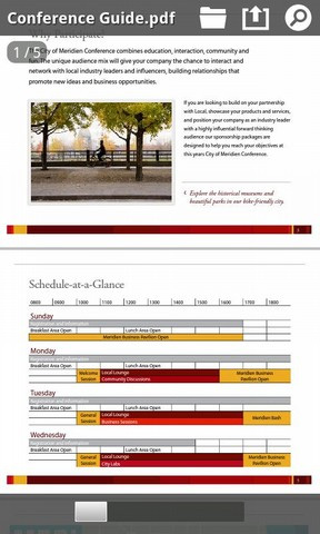 4. Adobe Reader Die Android Version des Adobe Readers bietet genau wie sein Pendant vom PC und Mac die Möglichkeit, PDF-Dateien auf dem Smartphone oder Tablet anzusehen. Es können auch verschlüsselte Dateien geöffnet werden. Eine Suchfunktion und Lesezeichen helfen beim Finden bestimmter Textabschnitte oder Bilder. Für die Darstellung stehen unterschiedliche Anzeigemodi parat. Der Adobe Reader kann kostenlos aus dem Android Market heruntergeladen werden und ist in zahlreichen Sprachversionen nutzbar.