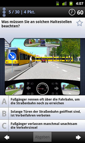 4. Fahrschule Mit der App Fahrschule stehen Führerscheinprüflingen nicht nur die Prüfungsfragen für den Auto Führerschein zur Verfügung. Die App beinhaltet vielmehr die Fragen aller KFZ-Klassen. Neben dem Übungsmodus lassen sich mit einem Countdown auch reale Prüfungsbedingungenen simulieren. Auch die Übung von speziellen Teilgebieten ist möglich. Wird die Fahrschule App auf einem Android Tablet verwendet, profitiert der Nutzer von einer speziellen Darstellung, die Gebrauch von den erweiterten Darstellungsmöglichkeiten der größeren Tablet-Displays macht.