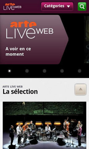 9. ARTE Live Web Der deutsch-französische Kultursender ARTE zeigt über die ARTE Live Web Android App für Darstellende Kunst Konzerte als Stream und ohne Werbung. Die Bandbreite der Darbietungen reicht dabei von Rock über Pop, Electro, klassische Musik, Jazz & Blues, World Music und Theater & Tanz. Die ARTE Live Web App steht kostenlos zum Download im Android Market bereit.