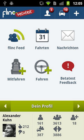 4. flinc Der Mitfahr-Service flinc vermittelt nicht nur Fahrgemeinschaften für Verbindungen von Stadt-zu-Stadt, sondern bezieht auch die Fahrtstrecke des Autofahrers mit ein. Dadurch können auch unterwegs noch Mitfahrer mitgenommen werden, sofern dies gewünscht ist. Benachrichtigungen erfolgen auf Wunsch automatisch. Zusätzlich werden die Nutzer bei flinc ermutigt, sich ein eigenes Vertrauensnetzwerk aufzubauen, um die Qualität von Fahrern und Mitfahrern zu steigern. Der Download der flinc App ist kostenlos möglich.
