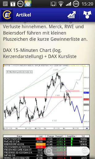 7. Godmode Anywhere Godmode Anywhere ist die mobile App des Online-Portals GodmodeTrader.de und liefert neben aktuellen Finanznachrichten auch Kurse und Charts in Echtzeit von den Börsen dieser Welt auf das Android Smartphone oder Tablet. Die persönlich wichtigsten Kurse lassen sich in eine Watchlist eintragen und somit jederzeit schnell und übersichtlich im Blick behalten. Auch Kursbewegungen können nachvollzogen werden. Godmode Anywhere kann kostenlos aus dem Google Play Store heruntergeladen werden.