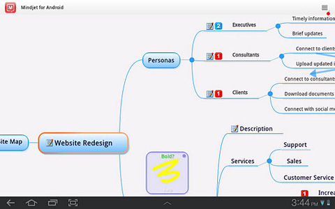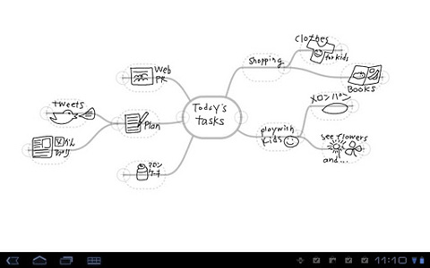 3. Mind Map Memo PRO Vom Funktionsumfang her kann Mind Map Memo PRO nicht mit den beiden vorherigen Apps mithalten, dennoch bietet es alles Notwendige zur Erstellung von Mind Maps. Die Farben der Elemente und des Hintergrundes kann vom Nutzer geändert werden. Die kostenpflichtige Pro-Version verfügt dabei über mehr Optionen als die kostenlose Variante namens Mind Map Memo.