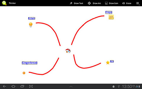 6. Thinker Exklusiv für Tablets mit Android 3.0 (Honeycomb) und höher wurde die App Thinker konzipiert. Ohne den Nutzer mit einer zumeist nicht benötigten Funktionsfülle zu erschlagen, lassen sich mit Thinker auf schnellem und einfachem Wege Brainstorming-Ergebnisse auf Papier bzw. auf den Touchscreen zaubern. Thinker steht kostenlos zum Download im Android Market bereit.