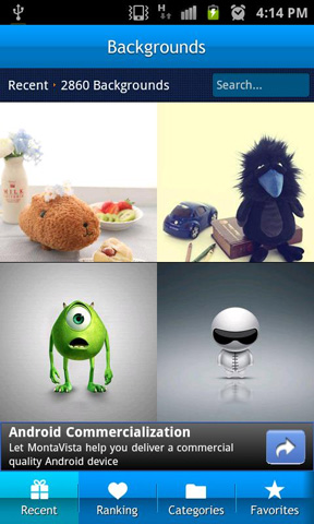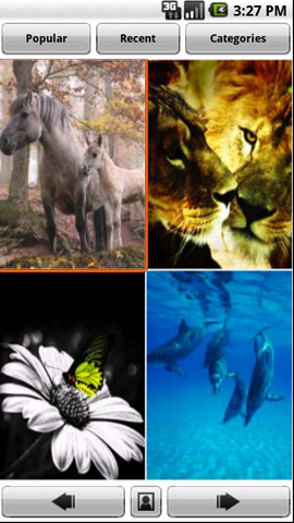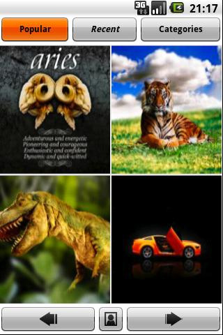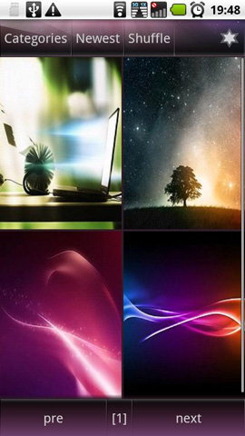 2. Coveroid Wallpapers HD Auf mehr als 30.000 hochaufgelöste Wallpaper-Motive summiert sich das Angebot von Coveroid Wallpapers HD. Diese sind in über 200 Kategorien eingeteilt. Beim Durchstöbern der Kategorien werden dem Nutzer immer vier Wallpaper-Motive gleichzeitig angezeigt. Auf Wunsch lässt sich jedes Wallpaper direkt aus der App heraus als Bildschirm-Hintergrund einstellen. Außerdem können einzelne Wallpaper auf Knopfdruck per Email an Freunde versendet werden. Coveroid Wallpapers HD kann kostenlos aus dem Android Market heruntergeladen werden.