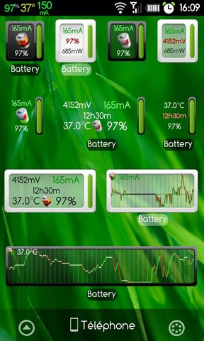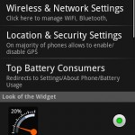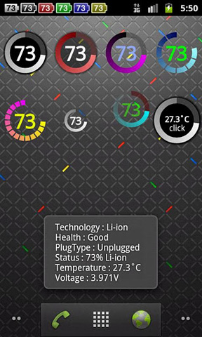 12. BatStat Battery Widget Auf einer Größe von 1×1 zeigt das BatStat Battery Widget neben dem prozentualen Akkuladestand auch die Akkuspannung und Akkutemperatur an. Tippt der Nutzer auf das Widget, kann er selbst wählen, ob er die Temperatur in Celsius oder Fahrenheit angezeigt bekommen möchte. BatStat Battery Widget steht kostenlos im Android Market zum Download bereit.