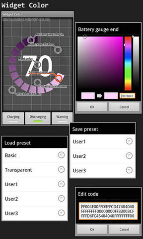 5. Battery Widget In Form von 1×1 großen Kreisdiagrammen kommen die verschiedenen Akku Widgets von Battery Widget. Mithilfe der umfangreichen Einstellungsoptionen kann der Nutzer sich das Widget genau an die eigenen Wünsche anpassen, was den Inhalt und die Optik angeht. Battery Widget steht kostenlos zum Download im Android Market bereit.