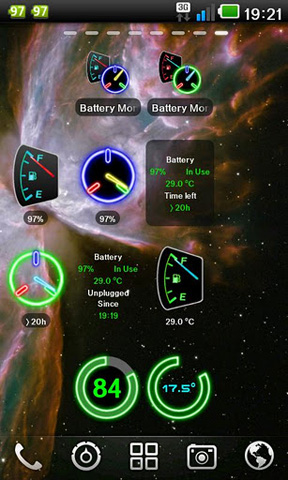 4. Battery Monitor Widget Mit Battery Monitor Widget hat der Nutzer die freie Auswahl: Soll der Akkuladestand als Tankanzeige dargestellt werden, simpel in Textform oder vielleicht futuristisch mit Neon? Battery Monitor Widget kann kostenlos aus dem Android Market heruntergeladen werden. Die optional erhältliche und kostenpflichtige Pro-Version bietet zahlreiche weitere Einstellungen zur Personalisierung des Akku Widgets an.