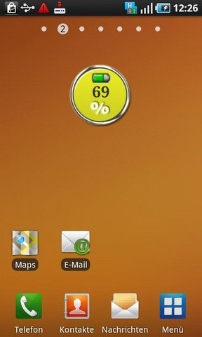 6. BatteryLife Auch die Größe von BatteryLife ist standardisiert und beträgt 2×1. Der Akkuladestand wird grafisch und als Prozentwert angezeigt. Im Einstellungsmenü kann der Nutzer die Farben des BatteryLife Widgets an seine eigenen Vorlieben anpassen. BatteryLife kann kostenlos aus dem Android Market heruntergeladen werden.
