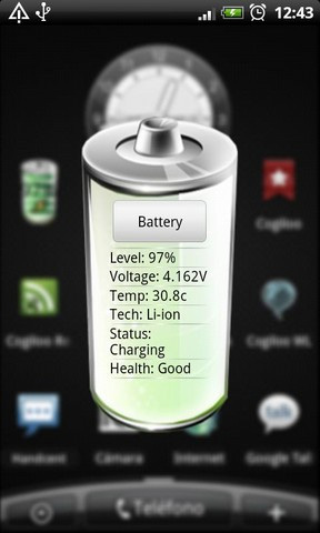 7. Cogiloo Battery Das 1×1 große Widget Cogiloo Battery zeigt den prozentualen Wert des aktuellen Akkuladestandes an. Ein Fingertipp auf das Widget öffnet weitere Informationen zu Spannung, Temperatur, Art und Zustand des Akkus. Das Cogiloo steht kostenlos im Android Market zum Download bereit.