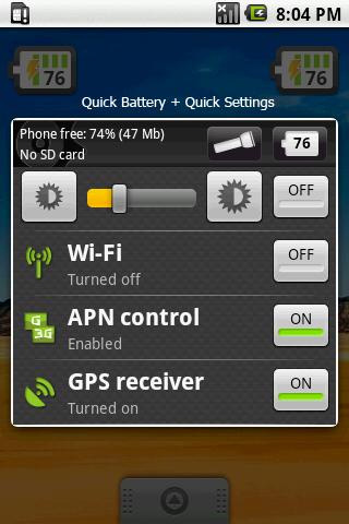 13. Quick Battery Von den Entwicklern des beliebten Toggle Widgets Quick Settings stammt das Pendant zum Anzeigen des Akkustandes Quick Battery. Beide Widgets können miteinander verknüpft werden, so dass beim Fingertipp auf das Quick Battery Widget ein Menü geöffnet wird, dass aktive Akkufresser wie die WiFi-Verbindung, UMTS oder GPS anzeigt. Auf Wunsch lassen sich diese direkt deaktivieren. Das kostenlose Quick Battery Widget selbst zeigt den Akkuladestand auf einer Größe von 1×1 in grafischer Form und als Prozentwert an.
