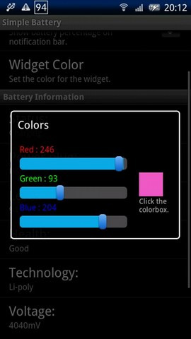 15. Simple Battery Das Simple Battery Widget beschränkt die Anzeige auf den aktuellen Prozentwert des Akkustandes in Textform mit einem kleinen Spiegeleffekt. Ein Fingertipp auf das Widget bringt den Nutzer zu weiteren Informationen wie der Akkuspannung und dem Akkuzustand. Außerdem kann der Nutzer die Farbe des Widgets an seine eigenen Wünsche anpassen. Simple Battery ist kostenlos erhältlich.
