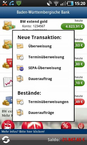 Immer mehr Banken und Sparkassen bieten die Möglichkeit, dass komplette Online-Banking auch per Android App abzuwickeln. Die Abfrage des Kontostandes, die Einrichtung von Daueraufträgen oder Überweisungen usw. wird damit auch von unterwegs aus möglich. Praktisch ist aber auch die Suche nach Filialen und Geldautomaten, die von vielen Banken und Sparkassen über ihre App angeboten wird. Alle Banken verfügen über Systeme, mit denen sie die höchstmögliche Sicherheit beim Mobile Banking gewährleisten wollen.