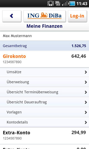 8. ING-DiBa Mobile Banking Vielen ist die ING-DiBa vor allem wegen dem bekannten Basketball-Spieler Dirk Nowitzki ein Begriff, der als Werbeträger der Direktbank fungiert. Die ING-DiBa Mobile Banking App bietet alle wichtigen von der Website bekannten Funktionen, u. a. Abruf des Kontostandes, Überweisungen tätigen, Daueraufträge und Lastschriften einrichten, Aktien handeln und vieles mehr. Dazu kommen eine Geldautomaten-Suche und Produktinformationen. Die ING-DiBa Mobile Banking App kann kostenlos heruntergeladen werden.
