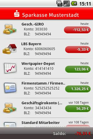 2. S-Banking (Sparkasse) Mit der offiziellen Mobile Banking App der Sparkasse lassen sich mehrere Sparkassen-Konten gleichzeitig verwalten, wozu Giro- & Festgeldkonten, Tagesgeldkonten, Spar- & Darlehenskonten sowie Depots und Kreditkartenumsätze gehören. Die App bietet alle wichtigen Funktionen, die Kunden auch vom regulären Online-Banking her kennen: u. a. Kontostand abrufen, Überweisungen tätigen (Sofort- und Terminüberweisungen), Daueraufträge verwalten und Umbuchungen vornehmen. Für regelmäßig benötigte Transaktionen können Vorlagen angelegt werden. S-Banking ist im Gegensatz zur kostenlosen Version S-Finanzstatus multibankenfähig.