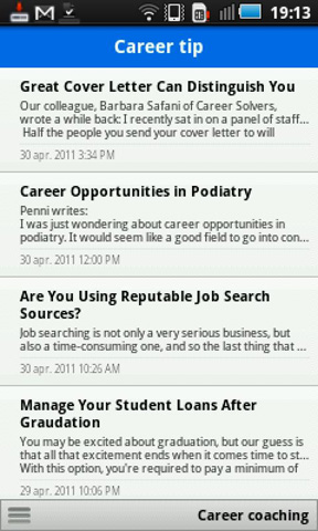 7. Karriere Die Karriere App sammelt Karriere-Neuigkeiten sowie Tipps und Tricks für Arbeitssuche von verschiedenen Personalvermittlern und Trainern und fasst diese in einem News-Stream zusammen. Die Inhalte sind englischsprachig und kann kostenlos aus dem Google Play Store heruntergeladen werden.