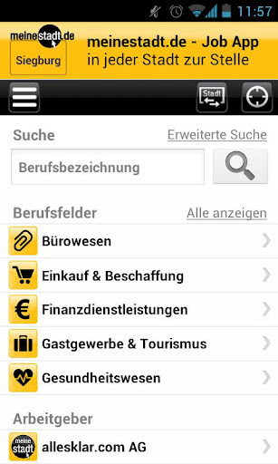 3. meinestadt.de Job App Mit der meinestadt.de Job App stehen Android Nutzern jederzeit knapp 320.000 Stellenangebote mobil zur Verfügung. Mit der Lokalisierungsfunktion lassen sich auch die Jobs anzeigen, die sich im direkten Umkreis zum Nutzerstandort befinden. Die meinestadt.de Job App kann kostenlos aus dem Google Play Store heruntergeladen werden.