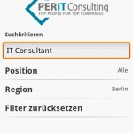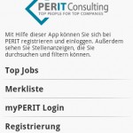 8. PERIT IT-Jobsuche Das Personalberatungsunternehmen Perit Consulting ist auf die Vermittlung von Fach-, Vertriebs- und Führungskräften im Informations- und Kommunikationssektor spezialisiert. Mit der PERIT IT-Jobsuche App haben Nutzer jederzeit Zugriff auf die aktuellsten Stellenangebote. Nach einmaliger Erstellung des persönlichen Job-Agenten findet die App anschließend automatisch alle neuen Stelleangebote, die auf das Profil des Nutzers passen.