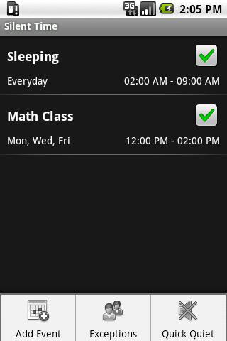 4. Silent Time Lite Das Meeting ist in vollem Gange, die Diskussion hitzig. Plötzlich klingelt das Smartphone und alle Teilnehmer schauen den Besitzer vorwurfsvoll an, da er mal wieder vergessen hat, das Gerät rechtzeitig lautlos zu stellen. Damit es nicht soweit kommt, lassen sich mit der kostenlosen Silent Time Lite App verschiedene Zeiträume definieren, während denen das Android Smartphone automatisch in den Lautlos-Modus wechselt. Wenn der angegebene Zeitraum beendet ist, wechselt das Gerät ebenfalls selbständig zurück in den normalen Modus.
