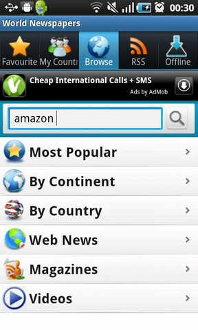 7. Zeitungen (World Newspapers) Aktuelle Nachrichten von Zeitungen aus der ganzen Welt führt Zeitungen (World Newspapers) in einer einzigen App zusammen. Der Nutzer kann auf Nachrichtenangebote von Zeitungen aus mehr als 60 Ländern zugreifen. Über den integrierten RSS Reader kann er außerdem manuell weitere Nachrichtenquellen hinzufügen. Zeitungen (World Newspapers) kann kostenlos aus dem Android Market heruntergeladen werden.