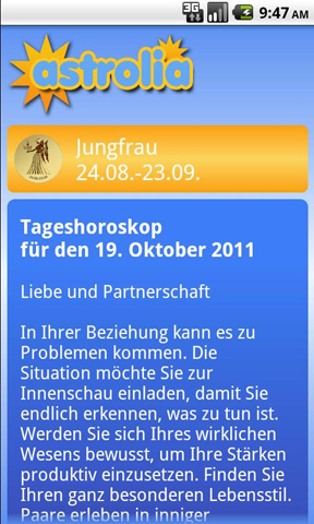4. astrolia – Horoskope & Tarot Die App von astrolia Horoskope & Tarot beinhaltet neben dem Tageshoroskop zu den Themen Liebe & Partnerschaft, Gesundheit & Fitness und Beruf & Finanzen auch ein kostenloses Traumdeuterlexikon. Telefonische Beratung gibt es optional und kostenpflichtig telefonisch von Kartenlegern, Wahrsagern und Hellsehern, denen Fragen zu allen Lebensbereichen gestellt werden können.