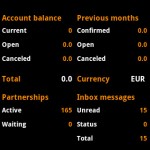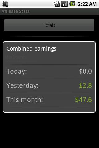 7. Affiliate Stats Mit Affiliate Stats können die Statistiken der Affiliate Netzwerke Neverblue, Maxbounty und Clickbooth jederzeit auch von unterwegs abgefragt werden. Die App zeigt die Statistiken für den heutigen sowie den gestrigen Tag an. Außerdem erhält der Nutzer eine Monatsübersicht seiner bisherigen Einnahmen.