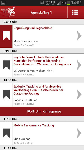 4. Affiliate TactixX Die Affiliate TactixX ist die bedeutendste Affiliate Marketing Konferenz und findet alljährlich im Rahmen der Internet World Messe in München statt. Mit der Affiliate TactixX App haben Nutzer jederzeit das Konferenzprogramm, Informationen zu den Referenten, das Workshop-Angebot und vieles mehr mobil dabei. Die App kann kostenlos aus dem Google Play Store heruntergeladen werden.