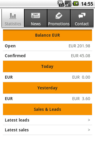 8. M4N Affiliate Marketing Das niederländische Affiliate Netzwerk M4N gehört zur zanox-Gruppe. Mit der App haben Nutzer des Netzwerks jederzeit Zugriff auf ihre aktuellen Statistiken. Momentan ist die M4N Affiliate Marketing App allerdings nur in niederländischer Sprache verfügbar. Der Download aus dem Android Market erfolgt kostenlos.
