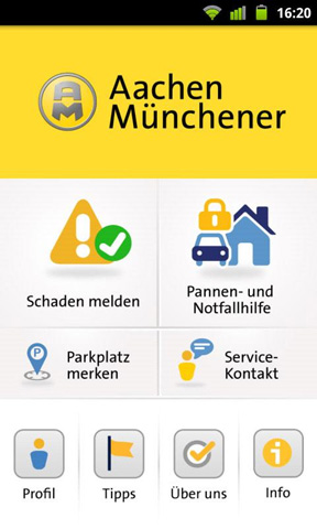 2. AachenMünchner Service Mit der AachenMünchner Service App lassen sich Schadensmeldungen für sämtliche Versicherungsbereiche der AachenMünchner Versicherung durchführen, egal ob an die KFZ-, Haftpflicht-, Hausrat-, Glas-, Wohngebäude- oder Unfallversicherung. Die Meldung kann entweder telefonisch oder per Formular aus der App heraus erfolgen. Außerdem bietet die AachenMünchner App eine Parkplatz-Merker-Funktion uns steht kostenlos im Android Market zum Download bereit.