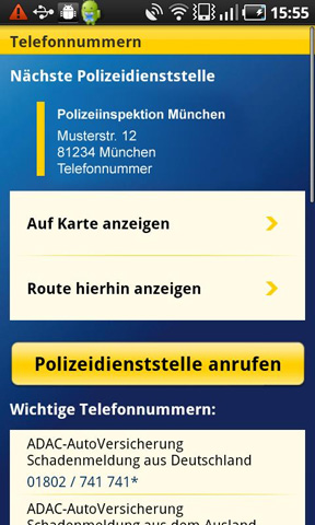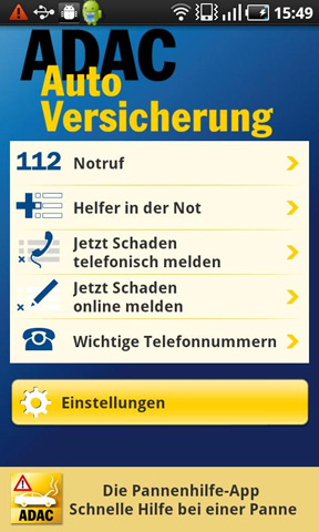5. ADAC Nothelfer Exklusiv von Kunden der ADAC-AutoVersicherung kann die ADAC Nothelfer App genutzt werden, um im Bedarfsfall schnelle Hilfe anzufordern oder einen Schaden zu melden. Die Schadensmeldung kann entweder telefonisch oder online erfolgen. Dazu bietet die kostenlose App die Möglichkeit, Schadensskizzen zu erstellen, die nächstgelegene Polizeistation zu finden und einen Unfallort per GPS zu übermitteln.