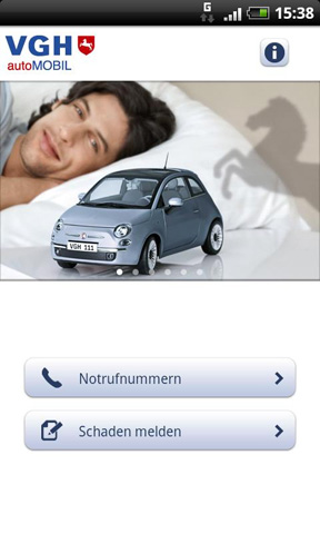 3. VGH autoMOBIL Kunden der VGH Versicherung können über die App Schadenmeldungen über ein vorgefertigtes Formular vornehmen, Notruf- und Service-Nummern anrufen sowie Verhaltenstipps für Unfälle und Pannen holen. Auch ein Bußgeldrechner und eine Funktion zum Speichern der GPS-Position des eigenen Parkplatzes sind vorhanden. Die VGH autoMOBIL App steht kostenlos zum Download im Android Market bereit.