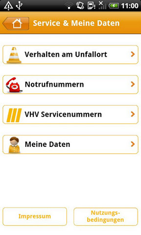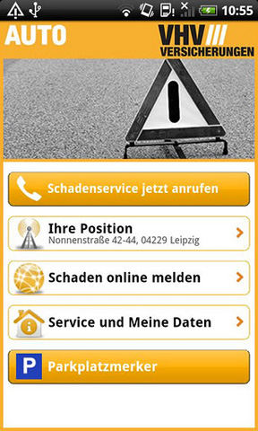 7. VHV Schadenservice Mit der VHV Schadenservice App sind Kunden im Falle eines Unfalls gewappnet. Eine Checkliste hilft beim richtigen Verhalten im Schadensfall. Außerdem können die Nutzer direkt aus der App heraus mit der VHV in Verbindung treten. Dazu hat er alle wichtigen Notrufnummern auf einen Blick und weiß dank des praktischen Parkplatzmerkers jederzeit, wo er sein Fahrzeug abgestellt hat. Die VHV Schadenservice App steht kostenlos im Android Market zum Download bereit.