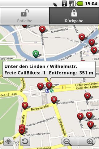 4. Call A Bike Der Call A Bike-Service der Deutschen Bahn bietet die Möglichkeit, in vielen Großstädten und in der Nähe diverse Bahnhöfe Fahrräder auszuleihen und an jeder beliebigen Call A Bike-Station in der Stadt wieder abzugeben. Mit der kostenlosen Android App können Call A Bike-Nutzer nicht nur den Weg zur nächstgelegenen Call A Bike-Station finden, sondern auch die Verwaltung des Leihvorgangs durchführen.