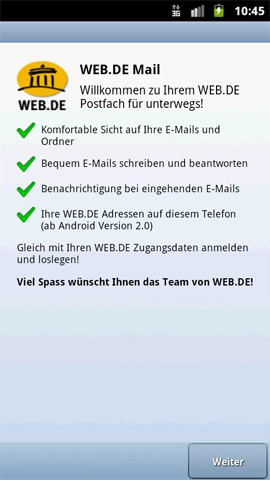 6. WEB.DE Mail Nutzer eine Email-Adresse von Web.de können ihre Mails auch auf Android ganz bequem abrufen – mit der kostenlosen WEB.DE Mail App. Damit stehen nicht nur sämtliche Mails jederzeit mit einem Fingertipp zur Verfügung, auch das persönliche Adressbuch ist immer mit dabei.